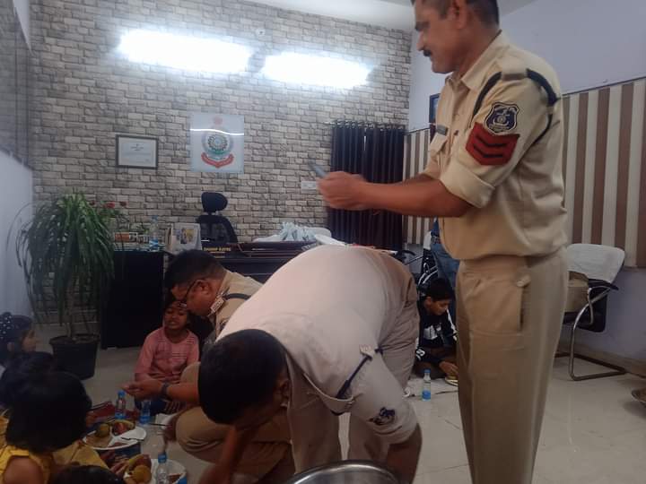 पुलिस अधिकारीयों ने माता स्वरूप नौ कन्याओं का चरण स्पर्श कर आशीर्वाद प्राप्त किया तथा बच्चों को उपयोगी सामान भेंट किया….