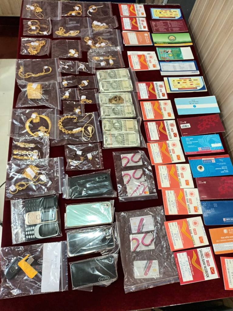 दोनों आरोपियों से तीन लाख नगद 3 लाख रूपये, 40 लाख रुपए के सोने के जेवर, होंडा अकॉर्ड कार, राडो घड़ी, बैंक पासबुक, एटीएम जप्त