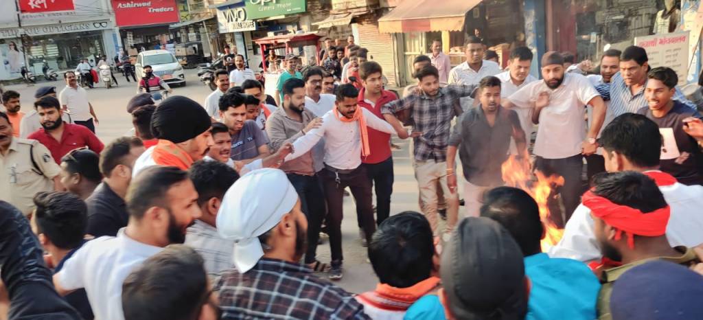रायगढ़। जिला भाजयुमो कार्यकर्ताओं ने जिला भाजपा अध्यक्ष उमेश अग्रवाल के नेतृत्व में छत्तीसगढ़ के मुख्यमंत्री और गृहमंत्री का पुतला दहन किया। इस दौरान भाजयुमो कार्यकर्ताओं की पुलिस से झड़प भी हुई।