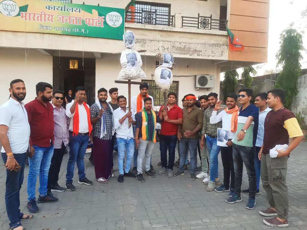 दरअसल, बेमेतरा के बिरनपुर में दो समुदायों के बीच हुए मारपीट और एक युवक की हत्या के विरोध में सोमवार को भारतीय जनता पार्टी के प्रदेश अध्यक्ष अरुण साव के नेतृत्व में भाजपा युवा मोर्चा के सैकड़ों कार्यकर्ता स्व भुनेश्वर साहू जी के गाँव बिरनपुर परिवार से मिलने जा रहे थे। पर गांव पहुंचने के 3 किलोमीटर पहले ही भारतीय जनता पार्टी के प्रदेश अध्यक्ष अरुण साव एवं युवा मोर्चा के प्रदेश अध्यक्ष श्री रवि भगत को पुलिस प्रशासन ने गिरफ्तार कर लिया है। जिसके विरोध में मंगलवार को भारतीय जनता युवा मोर्चा रायगढ़ द्वारा टाकीज चौक जिला पुलिस अधीक्षक कार्यालय के सामने मुख्यमंत्री भुपेश बघेल एवं गृहमंत्री ताम्रध्वज साहू का पुतला दहन किया गया।