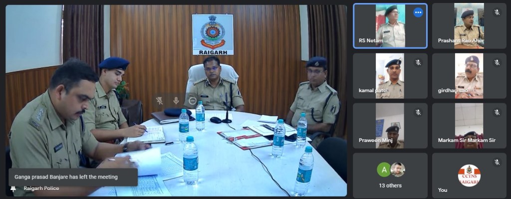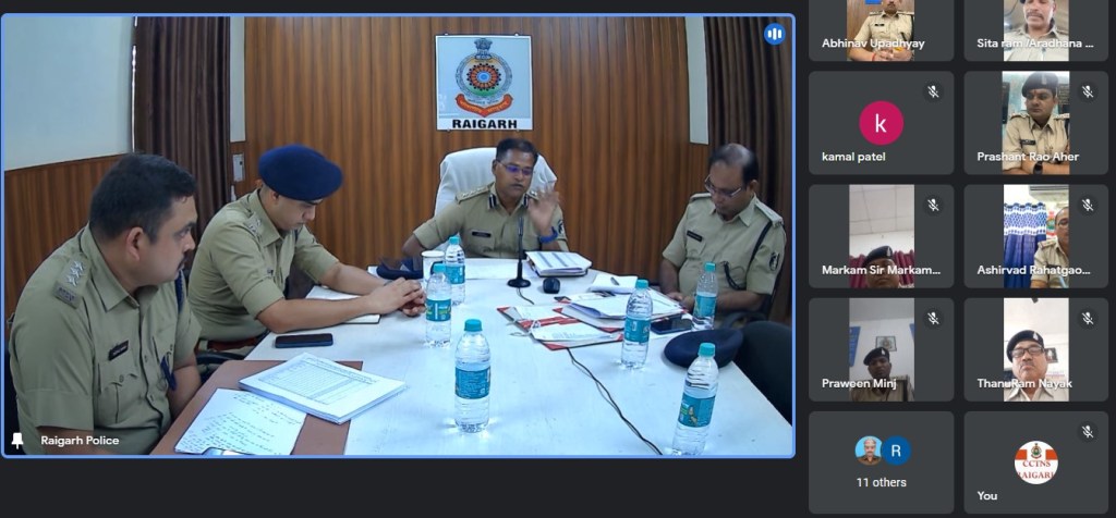 रायगढ़ । आज सुबह वरिष्ठ पुलिस अधीक्षक सदानंद कुमार द्वारा पुलिस कार्यालय के वीडियो कॉन्फ्रेंसिंग कक्ष से जिले के राजपत्रित पुलिस अधिकारियों, थाना/चौकी प्रभारियों के साथ वर्चुअल क्राइम मीटिंग लिया गया । वरिष्ठ पुलिस अधीक्षक ने कहा कि क्राइम मीटिंग वन-टू-वन होनी थी पर परिस्थितियों के अनुरूप वर्चुअल मीटिंग रखा गया है ।