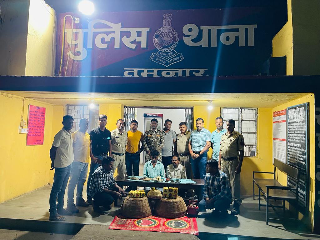 थाना प्रभारी तमनार द्वारा एसएसपी महोदय को सूचना से अवगत कराया गया जिनके मार्गदर्शन पर देर रात्रि करीब 02.30 बजे थाना प्रभारी घरघोड़ा निरीक्षक शरद चंद्रा एवं थाना प्रभारी तमनार निरीक्षक प्रवीण मिंज के नेतृत्व में दोनों थानों की संयुक्त टीम गठित कर जुआ स्थान पर पुलिस टीम द्वारा रेड किया गया ।