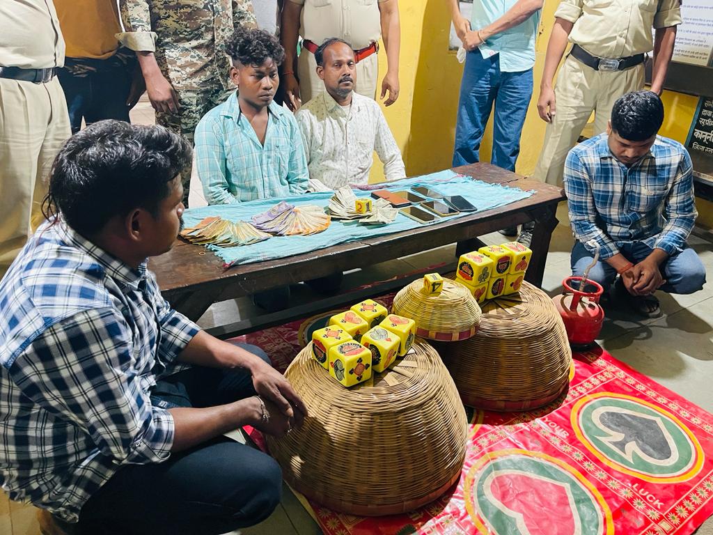 जुआ रेड में पकड़े गए 4 आरोपियों से 1 लाख 7 हजार 640 रूपये नगद, 06 मोबाइल और खुडखुड़िया जुआ सामग्री की जब्ती….