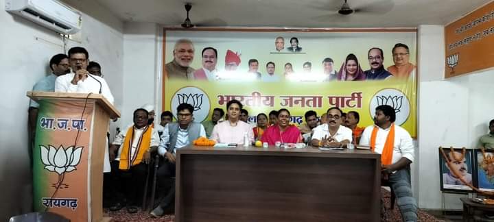 रायगढ़। भारतीय जनता पार्टी जिला कार्यसमिति की बैठक रायगढ़ लोकसभा क्षेत्र के लोकप्रिय सांसद गोमती साय,प्रदेश महामंत्री भाजपा ओपी चौधरी,जिला संगठन प्रभारी व पूर्व सांसद अभिषेक सिंह,भाजपा प्रदेश कार्यसमिति सदस्य,रायगढ़ लोकसभा क्षेत्र के जनसंपर्क अभियान के प्रभारी कृष्णा राय,सह प्रभारी जगन्नाथ पाणिग्रही एवं चारों विधानसभा प्रभारियों की उपस्थिति एवं जिला भाजपा अध्यक्ष उमेश अग्रवाल की अध्यक्षता में आज की बैठक संपन्न हुई।