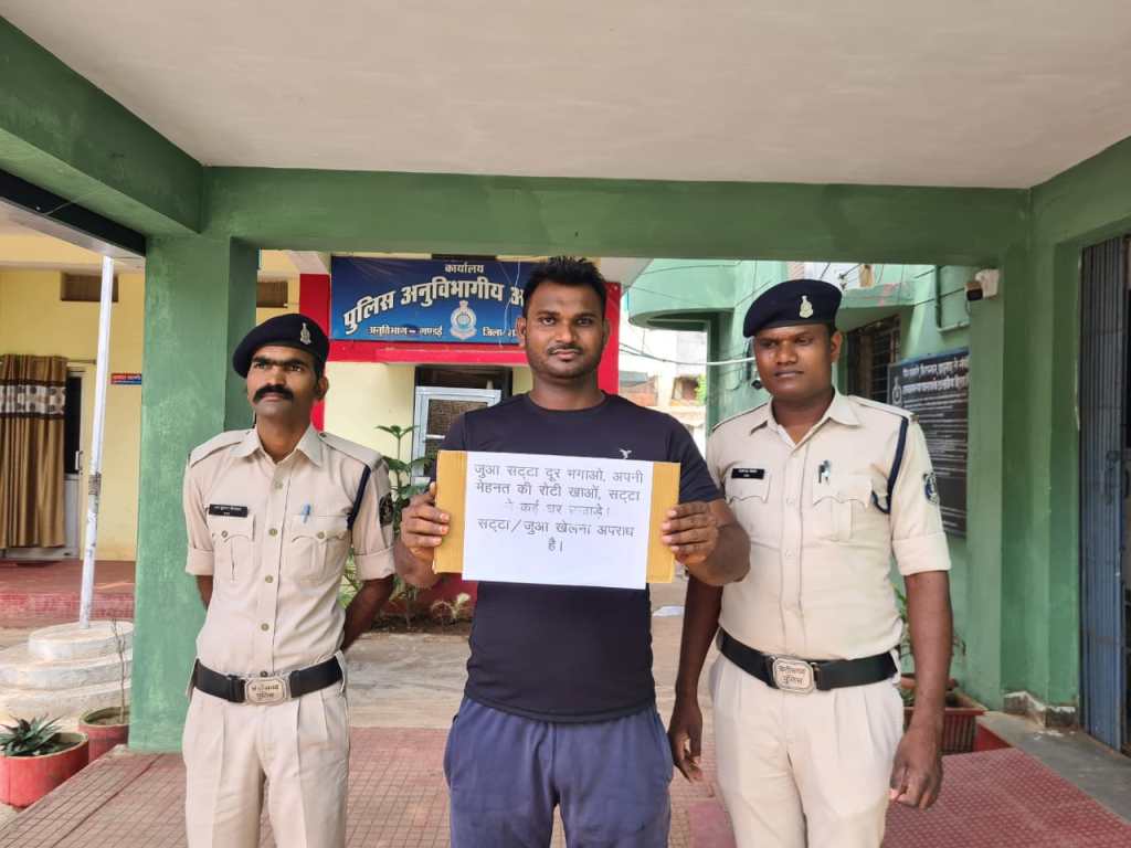 सूचना पर थाना गंडई से टीम तैयार कर मुखबीर के बताये स्थान पर दबिश दी गई जहां पर सलमान अली उर्फ बाबू खान पिता रमजान अली उम्र 28 साल साकिन वार्ड नं. 09 महामाईपारा गंडई को सट्टा पट्टी लिखते रंगे हाथ पकडा गया तलाशी पर आरोपी के पास से सट्टा पट्टी डाट पेन एवं नगदी 1200 रू. मिला जिसे जप्त किया गया आरोपी सलमान अली उर्फ बाबू खान का कृत्य छत्तीसगढ़ जुआ (प्रतिषेध) अधिनियम 2022 की धारा 6 के तहत् पाये जाने से विधिवत् कार्यवाही कर ज्युडिशियल रिमाण्ड पर भेजा गया है।