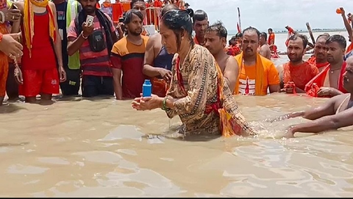भागलपुर । भागलपुर में मेला लग चुका है। देश के हर कोने से जो भी ट्रेन इस तरफ आ रही, गेरुआ वस्त्रधारी लोग कांवर लिए बोल बम का नारा लगा रहे। भागलपुर के सुल्तानगंज से गंगाजल लेकर कांवरिये झारखंड के देवघर निकल रहे हैं। वर्षों से आने वाले हों या पहली बार आए हों, कुछ सवाल सभी के मन में है- बाबा के दर्शन करने जाएंगे तो कृष्णा माता बम दिखेंगी? क्या वह भागलपुर आ गई हैं? इस बार आठ सोमवार है तो क्या हर सोमवारी वह 105 किलोमीटर की बिना रुके यात्रा करती हुई बाबा को जल चढ़ाएंगी? ने इन सवालों के साथ कृष्णा माता बम से बात की।