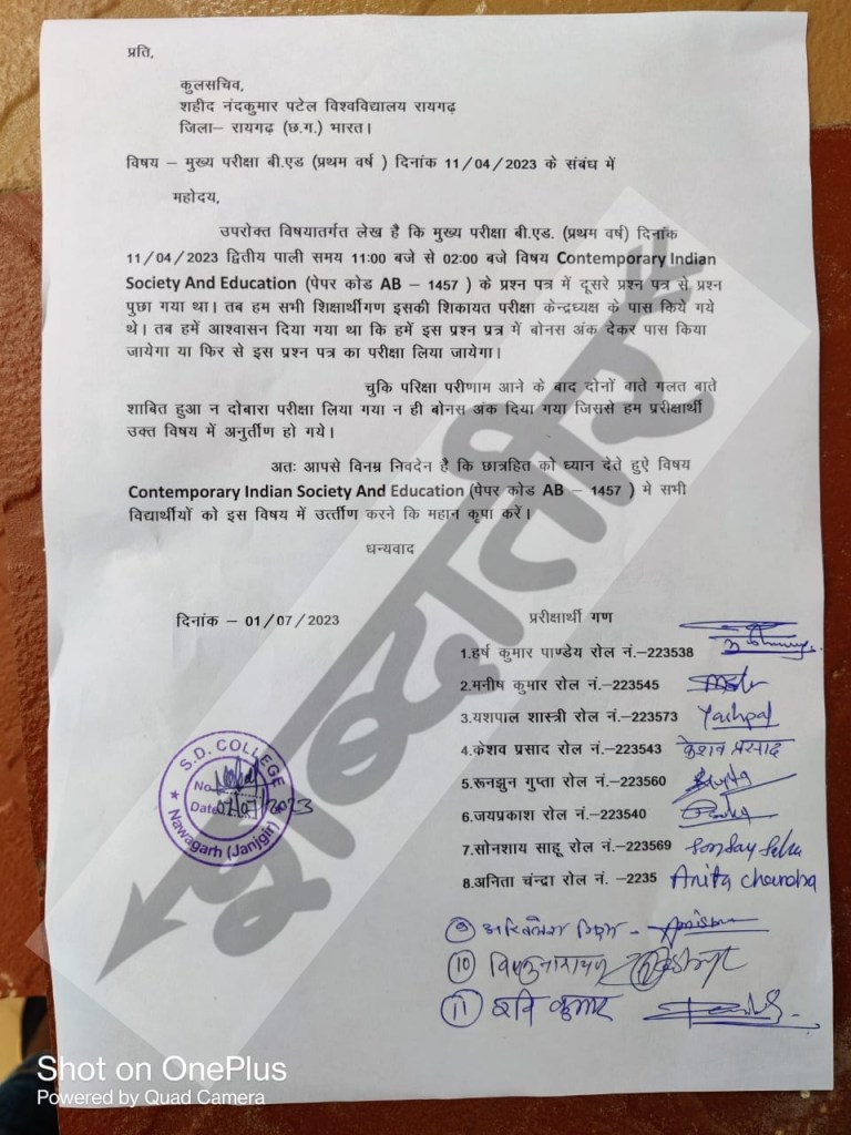 वहीं छात्रों का एक प्रतिनिधी मंडल ने उच्च शिक्षा मंत्री उमेश पटेल से भी मुलाकात की लेकिन छात्रों को यहां से भी जांच आश्वासन मिला हैं अब देखना हैं कि शहीद नंदकुमार पटेल के सपनों के साथ छात्रों के भविष्य का क्या होता हैं।