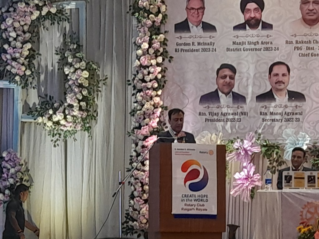 जिसके बाद राष्ट्रगान से कार्यक्रम की शुरुआत की गई, जिसके बाद निवर्तमान अध्यक्ष विजय अग्रवाल (N.R.)सभा को संबोधित किया, जिसमें उन्होंने सभी साथियों का दिल से धन्यवाद दिया, जिसके बाद संस्था के सचिव मनोज अग्रवाल ने क्लब के द्वारा की गई गतिविधियों की जानकारी सभी को दी की रोटरी कल्ब आफ रायगढ़ रायल ने क्या क्या किया।