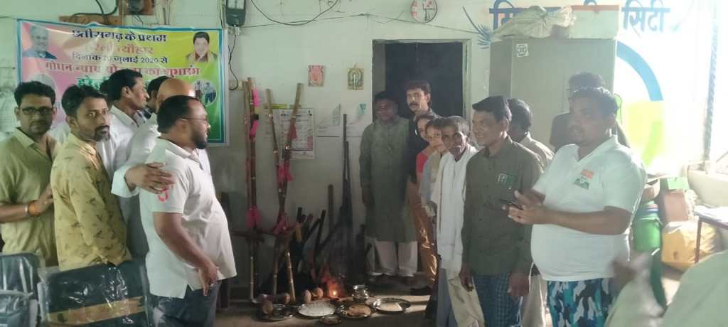 गंडई । नगर में राज्य के प्रथम पर्व हरेली का आयोजन मणि कंचन केंद्र सह गौठान , रानी बगीचा में किया गया, इसके साथ ही गोधन न्याय योजना का शुभारंभ भी किया गया ,कार्यक्रम में सर्वप्रथम अतिथियों के द्वारा गेड़ी की पूजा अर्चना किया गया ,सभी अतिथियों का स्वागत गुलाल व नीम पेड़ की डाली भेंट करके किया गया ।