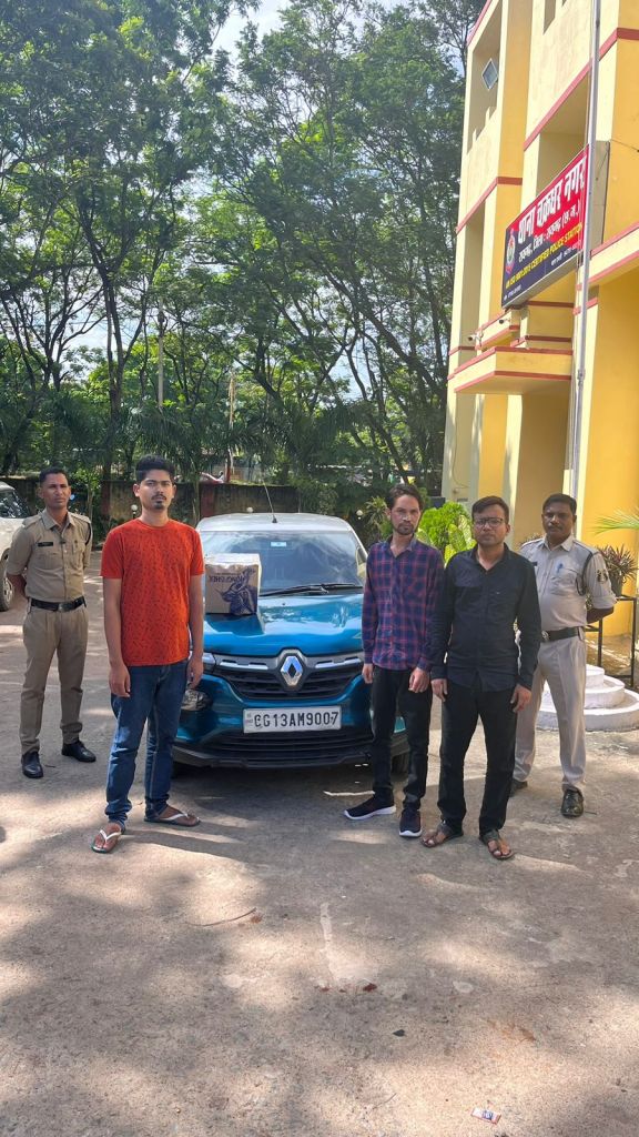 जिनके कब्जे से 10 बीयर बॉटल, 02 बॉटल मैकडावल अंग्रेजी शराब और शराब परिवहन में प्रयुक्त CG13 AM 9007 क्विड कार की जप्ती की गई है । शराब रेड कार्यवाही में थाना प्रभारी चक्रधरनगर प्रशांत राव आहेर, प्रधान आरक्षक सतीश पाठक, हेमप्रकाश सोन, आरक्षक डहरू उरांव, चन्द्रकुमार बंजारे , अभय यादव शामिल थे ।