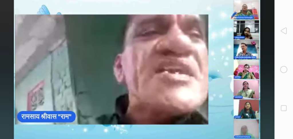 कार्यक्रम को सुन्दर रूप देते हुए विशिष्ठ अतिथि रामसाय श्रीवास द्वारा उनकी रचनाएं रखी गयी। विषय को सार्थक करते हुए , उनके द्वारा सार छंद में ,