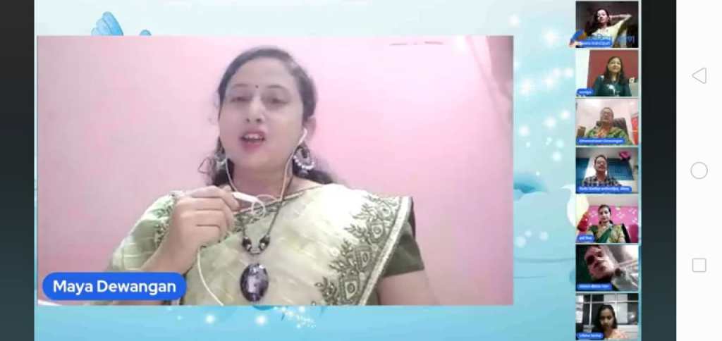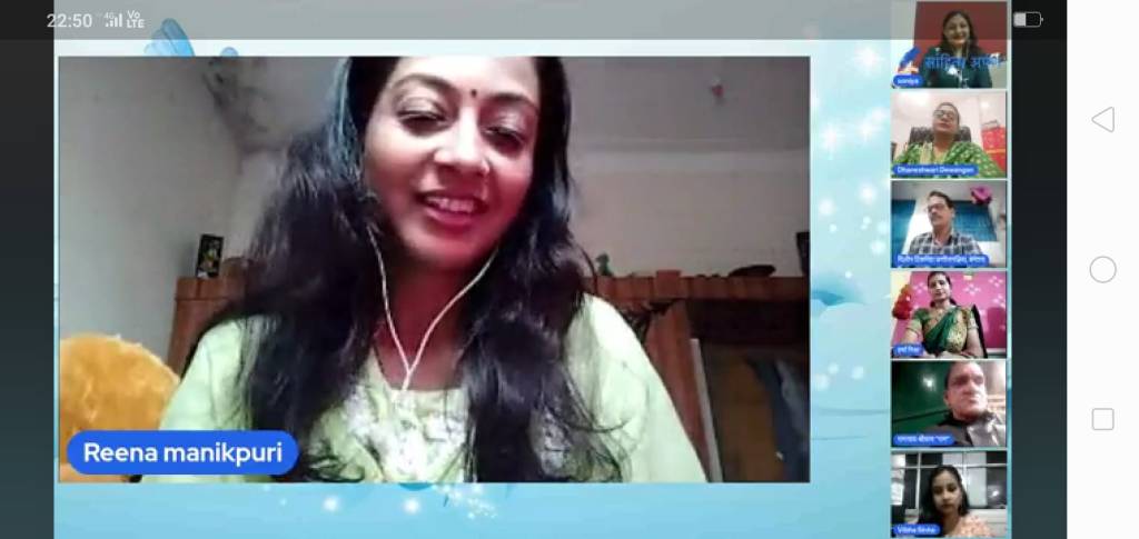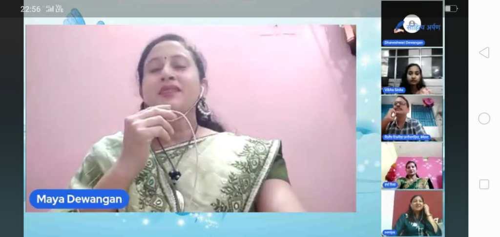 उसके उपरांत मंच की अध्यक्षा सोनिया गोयल द्वारा मंच की संचालिका एवं सचिव माया देवांगन को काव्य पाठ के लिए आमंत्रित किया गया,जिन्होंने विषय की सार्थकता को बनाते हुए , सावन पर बहुत ही सुन्दर विरह रस से भरा गीत प्रस्तुत किया।