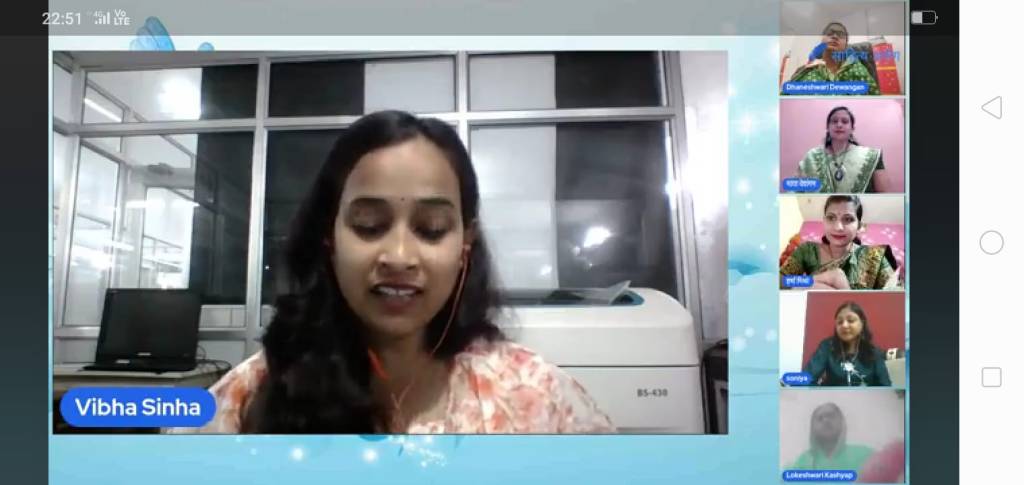 काव्य की धारा को आगे ले जाते हुए कार्यक्रम की संचालिका माया देवांगन द्वारा , विभा सिन्हा को काव्य पाठ के लिए आमंत्रित किया गया,औरतों की मनोदशा प्रस्तुत करती उनकी रचना (शायद अपने मन में मैंने यह बात बांध ली है ), बहुत ही सुन्दर एवं भावप्रद रही।