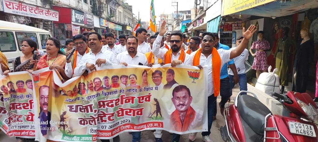 इसी कड़ी में आज दोपहर 2 बजे किसान मोर्चा के सैकड़ों कार्यकर्ता एवं भाजपा पदाधिकारियों के द्वारा जिला भाजपा कार्यालय से निकलकर पदयात्रा करते हुए जिला कार्यालय तक जाया गया,नगर के मुख्य मार्गों से कार्यकर्ताओं का हुजूम प्रदेश सरकार के खिलाफ नारेबाजी करते हुए जब कलेक्ट्रेट पहुंचा तो पहले से वहां भरी संख्या में पुलिस बल मौजूद था जिसने कार्यकर्ताओं को आगे बढ़ने से रोकना चाहा परन्तु कार्यकर्ताओं एवं किसानों के आक्रोश के सामने पुलिस की सख्ती भी काम नहीं आई।