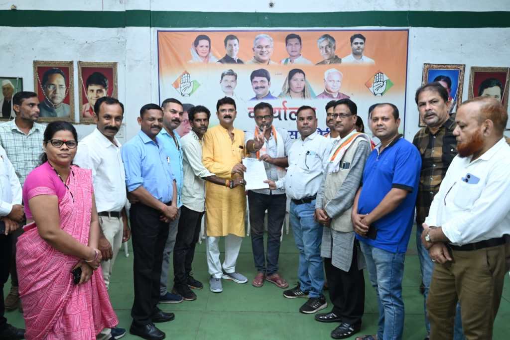 रायगढ़। प्रदेश कांग्रेस कमेटी के निर्देशानुसार विधायक प्रकाश नायक द्वारा जिला कांग्रेस कमेटी में ब्लॉक अध्यक्ष विकास ठेठवार को रायगढ़ विधानसभा से अपना दावेदारी आवेदन फार्म सौपा गया।