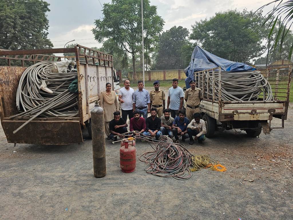 टाटा 407 वाहन के सीजी 12 ए. क्यु 3135, 01 पीकअप वाहन के सीजी 12 ए. क्यु 4216, 02 नग गैसकटर सेट, 02 नग एलपीजी गैस सिलेण्डर, 02 नग ऑक्सीजन सिलेण्डर, एंव 02 नग तलवार, 01 नग लोहे का पाईप, 01 नग स्टील का पाईप, एल्युमिनियम तार 4200 किलोग्राम किमती 500000रू. बरामद हुये।