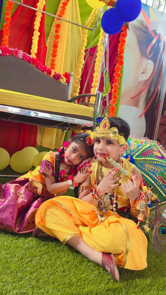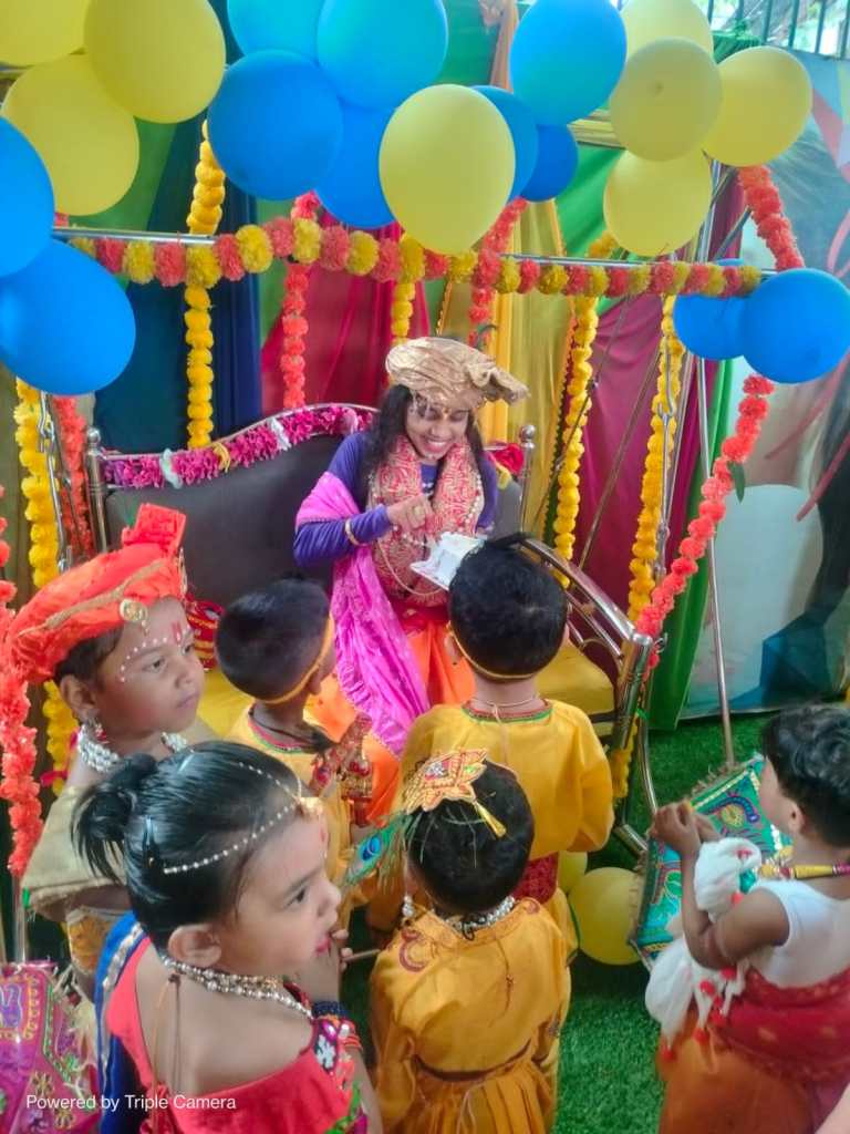 विद्यार्थियों एवं अभिभावकों को मंत्र मुग्ध कर दिया। तत्पश्चात् नन्हें मुन्ने विद्यार्थियों द्वारा राधा कृष्ण की वेशभूषा में राधा और कृष्ण के चित्रों को चरितार्थ करते हुए अपनी-अपनी झलकियां प्रस्तुत की।