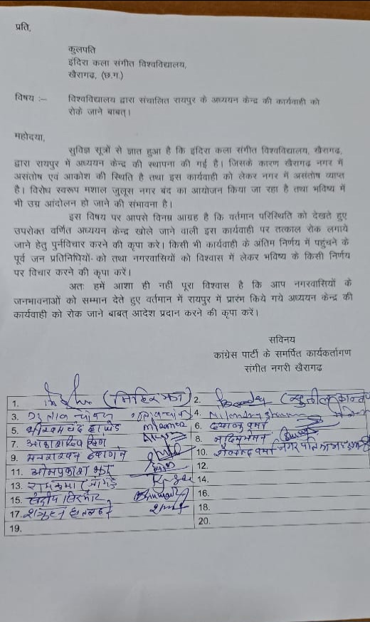 खैरागढ़। आज खैरागढ़ नगर के वरिष्ठ कांग्रेस जनों ने और कांग्रेस पार्टी के पदाधिकारी ने उप कुलपति महोदय से विश्वविद्यालय के विखंडन के विषय को लेकर विखंडन को रोके जाने को लेकर मुलाकात करने के बाद विज्ञापन सोप है, और विश्वविद्यालय प्रशासन को इस बात के लिए आगाह किया गया है, कि यदि विखंडन नहीं रोका गया।