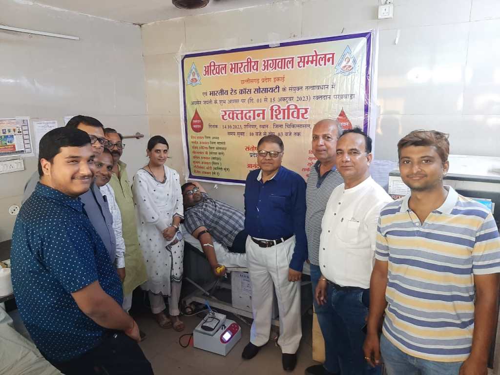 रायगढ़ । अखिल भारतीय अग्रवाल सम्मेलन जिला इकाई रायगढ़ द्वारा अग्रसेन जयंती के अवसर पर भारतीय रेड क्रॉस सोसाइटी के सहयोग से जिला चिकित्सालय स्थित ब्लड बैंक में रक्तदान शिविर का आयोजन किया गया उक्त रक्तदान शिविर में समाज के सभी वर्गों ने रक्तदान किया।