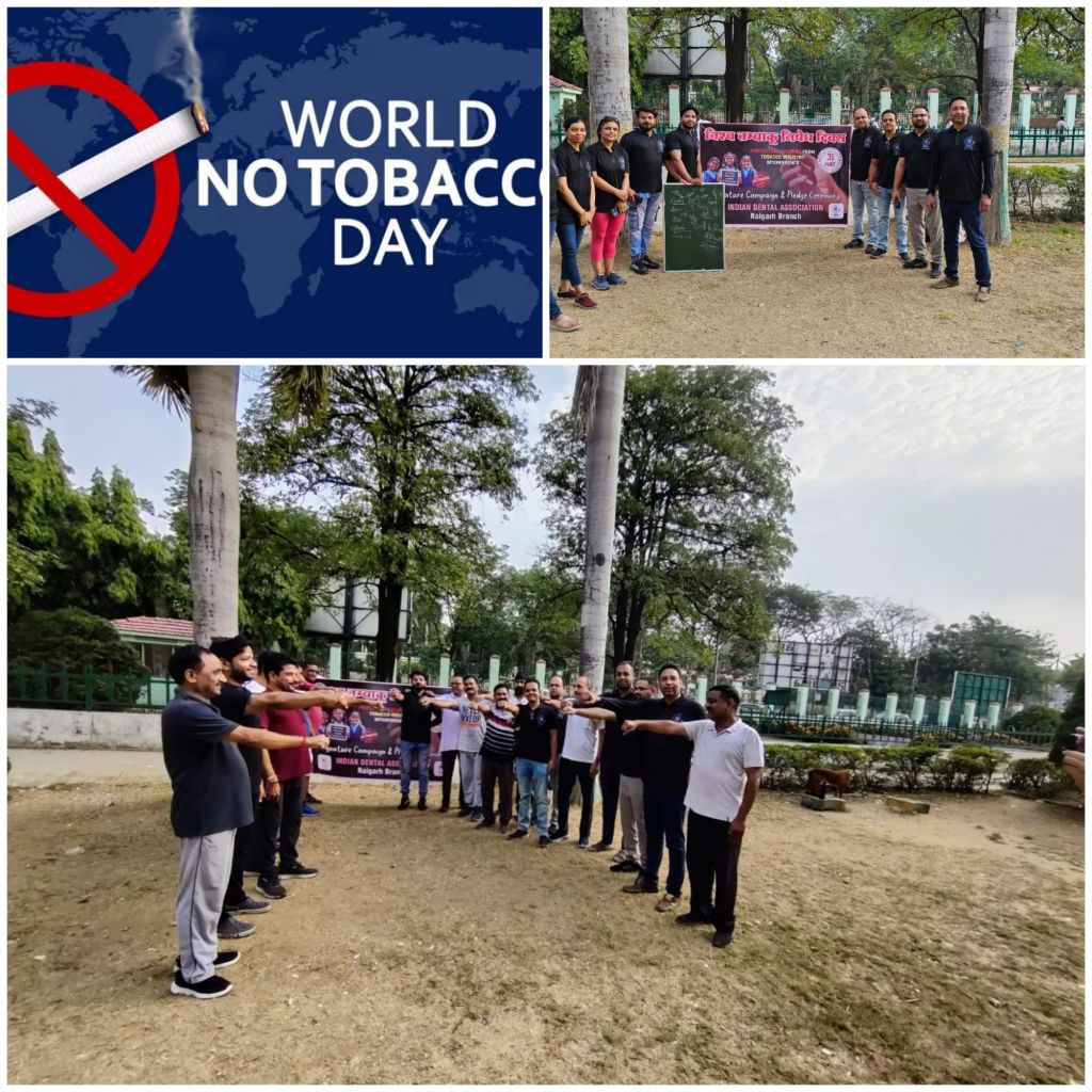 रायगढ।विश्व तंबाखू निषेद दिवस के अवसर पर कमला नेहरू पार्क में आई. डी.ए.रायगढ़ ब्रांच द्वारा एंटी टोबैको के सिग्नेचर कैंपेन का आयोजन किया गया जिसमें आई.डी.ए.रायगढ़ ब्रांच के अध्यक्ष डॉ. हरीश,डॉ भूपेंद्र पटेल(कोषाध्यक्ष) , एवं अन्य मेंबर जिसमें डॉ. अमित अग्रवाल, डॉ.नीतिश पटेल ,डॉ स्नेहा चेतवानी, डॉ जयश्री पटेल, डॉ शरद पांडा डॉ विवेक उपाध्याय, डॉ रानू शर्मा ,डॉ अंशु पटेल डॉ रितांबरा डॉ राकेश जिज्ञासी एवं 50 से भी ज्यादा आम नागरिकों ने इसमें बढ़-चढ़कर हिस्सा लिया और शपथ ली।