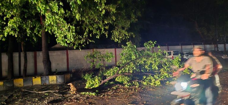 जिससे बिजली आपूर्ति में बाधा आ गई है। शहर के कई मोहल्ले अंधेरे में डूबे हैं, बिजली कर्मियों के लिए पेड़ की डगालों को हटाकर बिजली की सप्लाई को पुनर्स्थापित करना एक बड़ी चुनौती होगी, कहीं भी कोई जनहानि की खबर नहीं है।