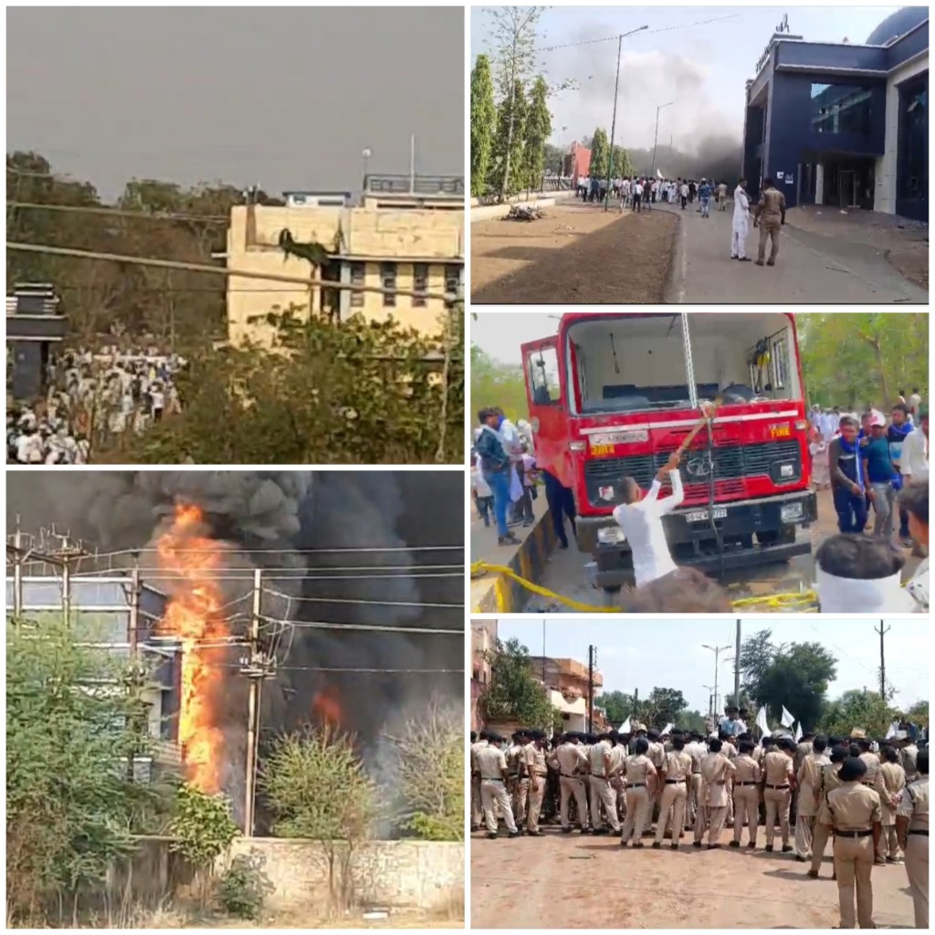 सतनाम समाज के प्रदर्शन में शामिल असामाजिक तत्वों ने जमकर उत्पात मचाते हुए परिसर में खड़ी गाड़ियों के साथ तोड़ फोड़ की ओर बड़ी संख्या में गाड़ियों को आग लगा दिया।