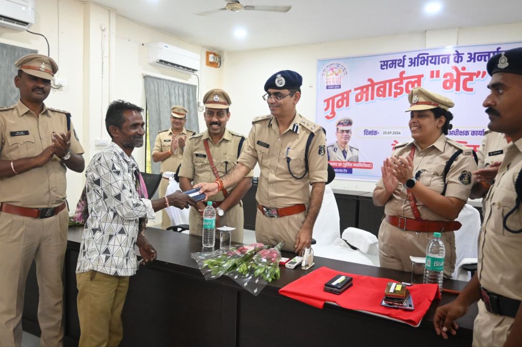 पश्चात पुलिस महानिरीक्षक पुलिस अधीक्षक कार्यालय पहुचकर जिला केसीजी अंतर्गत विगत दिनों गुम हुए मोबाइल फोन जिसकी शिकायत मोबाइल धारकों के द्वारा सायबर सेल केसीजी ,थाना एवं चौकी में किया था जिसे पुलिस अधीक्षक त्रिलोक बंसल जिला केसीजी के दिशा निर्देश में सायबर सेल टीम के द्वारा तकनीकी जानकारी प्राप्त कर जिला केसीजी के अंदरूनी गाँव, शहर, थाना क्षेत्र एवं दीगर राज्य म.प्र.,उ. प्र. आदि राज्यो से रिकवर किया गया था जिसे निरीक्षण दौरान पुलिस महानिरीक्षक महोदय के द्वारा पुलिस अधीक्षक कार्यालय केसीजी में आयोजित “समर्थ गुम मोबाइल भेंट कार्यक्रम ” के तहत गुम 103 नग मोबाइल फोन कीमत लगभग 22,00000/- रुपये को मोबाइल धारकों को वितरण कर शुभकामनाएं दिया गया
