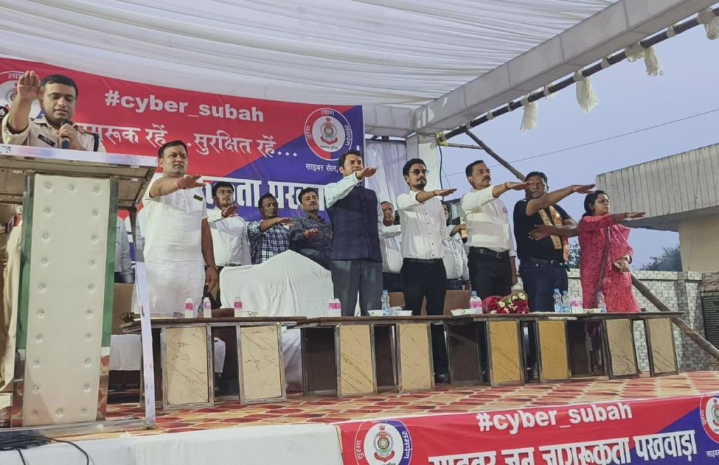 साईबर जनजागरूकता पखवाड़ा के दौरान पुलिस अधीक्षक दिव्यांग पटेल ने लोगों को साईबर सुरक्षा के लिए शपथ दिलाई, शपथ लेते हुए सभी ने कहा कि साईबर सुरक्षा की जिम्मेदारी स्वयं लेता हूं, जिसके लिए मैं लगातार अपनी सजगता और अपना ज्ञानवर्धन करता रहूंगा।