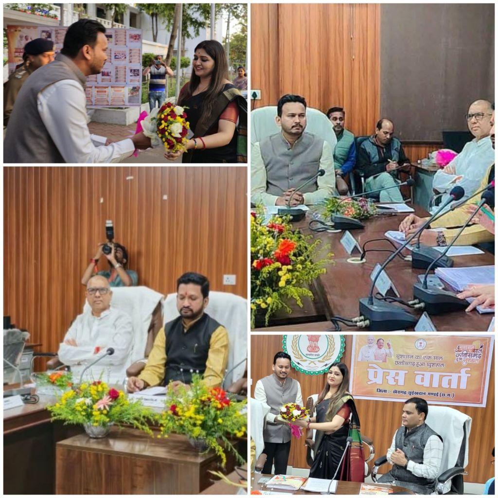 प्रदेश की साय सरकार का एक साल पूरा होने पर जिला कलेक्टोरेट स्थित सभा कक्ष में आयोजित हुई प्रेसवार्ता