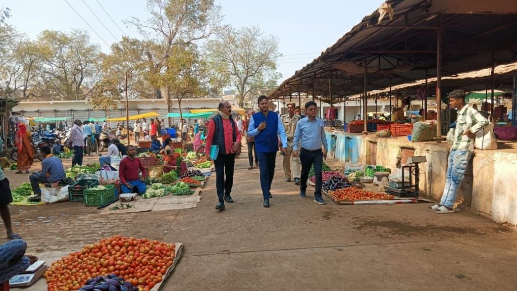 कलेक्टर ने इतवारी बाजार क्षेत्र में निर्मित दुकानों के आबंटन को लेकर किया स्थल निरीक्षण