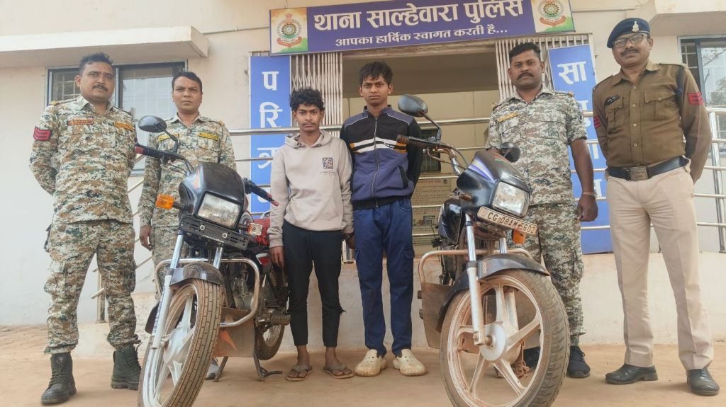 जिस पर आरोपियो ने जुर्म करना स्वीकार किया तथा घटना में चुराये हुए दो नग मोटर सायकल स्पेंडर प्लस को आरोपी आकाष कलिहारे के घर में छुपान बताए । दोनों आरोपीयों की निशानदेही पर चोरी गए 02 नग स्प्लेंडर मोटरसाइकल कीमती लगभग 1,20,000 ₹. को बरामद कर जप्त किया गया । आरोपीगण आकाष कुमार कलिहारें उम्र 18 साल 02 माह एवं लोचन कुमार मानेष्वर उम्र 19 साल निवासी जामगांव थाना साल्हेवारा जिला के.सी.जी. के विरुद्ध अपराध धारा सदर का सबूत पाए जाने से दिनांक 11/01/2025 को गिरफ्तार कर न्यायिक रिमाण्ड पर जेल भेजा गया।