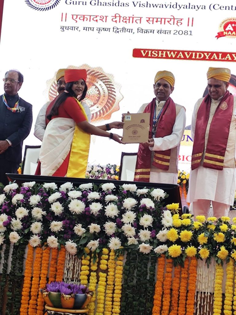 केंद्रीय विश्वविद्यालय में बुधवार को 11 वां दीक्षांत समारोह का आयोजन किया गया, जिसमें मुख्य अतिथि के रूप में उपराष्ट्रपति जगदीश सिंह धनखड़ रहे, इस शानदार आयोजन में छत्तीसगढ़ के राज्यपाल रामेन डेका मुख्यमंत्री विष्णु देव साय और तमाम वरिष्ठ नेता और अधिकारी मौजूद रहे, इस समारोह में न सिर्फ विश्वविद्यालय का गौरव बढ़ा, बल्कि एक होनहार बेटी ने भी सबका ध्यान खींच लिया।