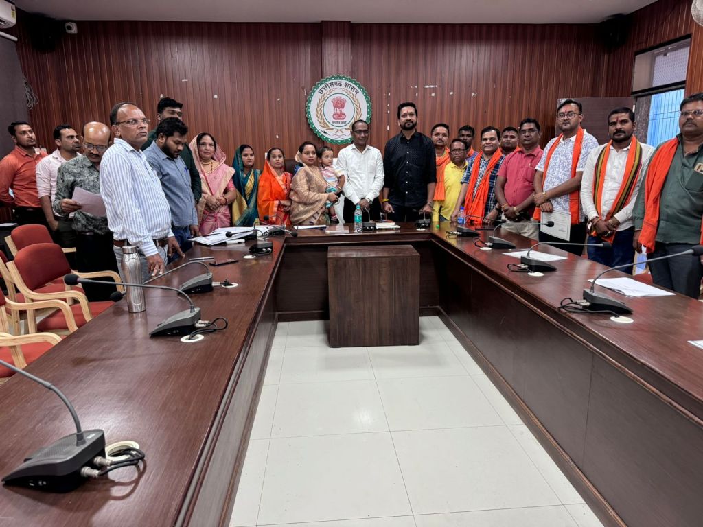 घोषणा के बाद विजयी प्रत्याशियों प्रियंका खम्हन ताम्रकार, विक्रांत सिंह, ललित चोपड़ा, दिनेश वर्मा, अरुणा राजू सिंह, जमुना नरेश कुर्रे, शताक्षी देवव्रत सिंह और भुनेश्वरी जीवन देवांगन को निर्वाचन प्रमाण पत्र प्रदान किया गया।