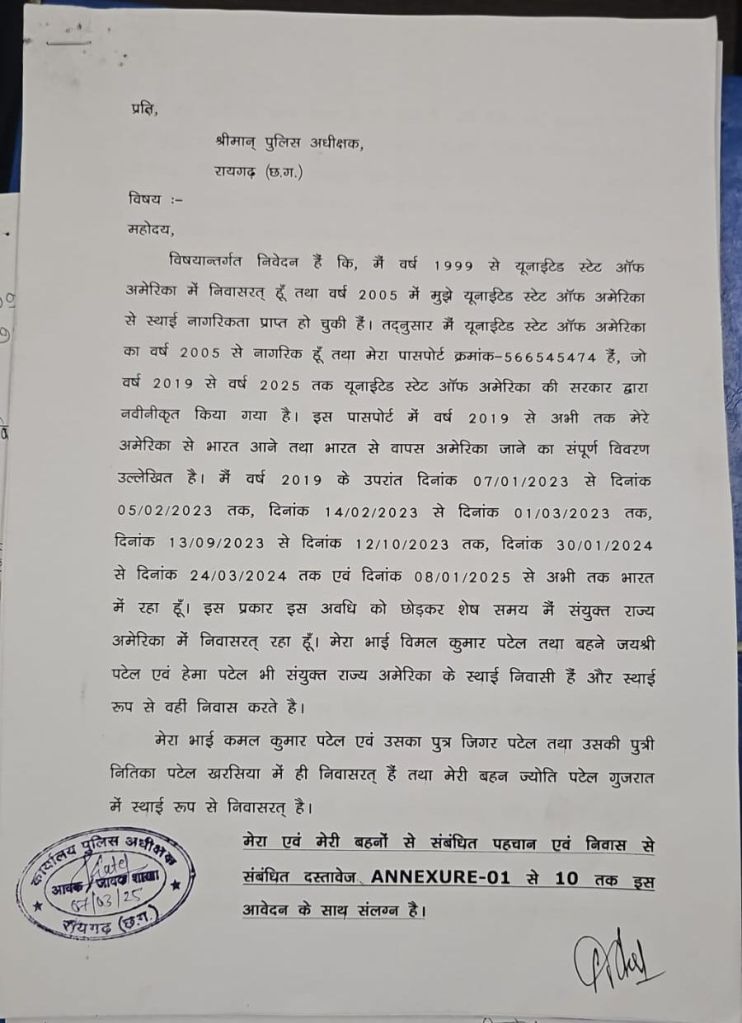 रायगढ़। रायगढ़ जिले के खरसिया में एक एनआरआई (प्रवासी भारतीय) परिमल पटेल के साथ संपत्ति धोखाधड़ी का गंभीर मामला सामने आया है, पीड़ित ने अपने परिजनों पर स्वयं की उपस्थिति के फर्जी दस्तावेज तैयार कर ज़मीन को अपने नाम कराने का आरोप लगाया है,इस मामले में पीड़ित ने खरसिया थाना सहित रायपुर पुलिस मुख्यालय में शिकायत दर्ज कराई है, और न्याय की मांग की है।