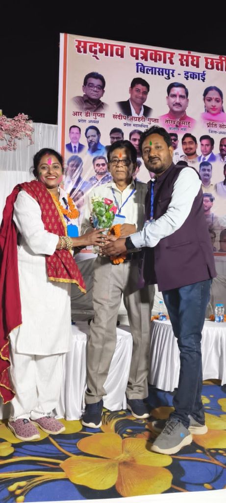 बिलासपुर। सदभाव पत्रकार संघ छत्तीसगढ़ की जिला इकाई बिलासपुर द्वारा गोंडवाना भवन में भव्य पत्रकार सम्मान सम्मेलन आयोजित किया गया,कार्यक्रम की शुरुआत प्रदेश अध्यक्ष श्री आर. डी. गुप्ता ने अतिथियों के साथ मां सरस्वती के चित्र पर दीप प्रज्वलित कर की। इस अवसर पर होली मिलन, सम्मान समारोह व पत्रकार सम्मेलन आयोजित किया गया, जिसकी अध्यक्षता श्री आर. डी. गुप्ता ने की।