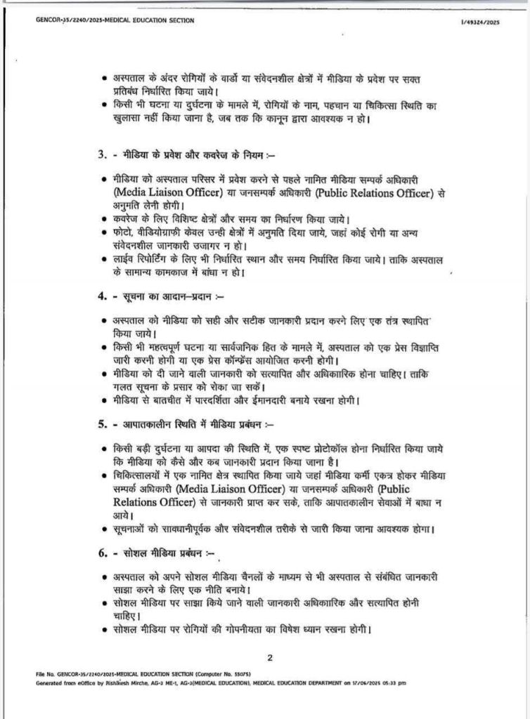рдбреЗрд╕реНрдХред рдЕрдм рдРрд╕рд╛ рд╕рдордп рдЖ рдЧрдпрд╛ рд╣реИрдВ, рдХрд┐ рдЬрдм рд╕рддреНрддрд╛ рдпрд╣ рддрдп рдХрд░рдиреЗ рд▓рдЧреЗ рдХрд┐ рдХреМрди рд╕реА рдЦрдмрд░ рджрд┐рдЦрд╛рдиреА рд╣реИ, рдФрд░ рдХреМрди рд╕реА рдирд╣реАрдВ, рддрдм рд╕рдордЭ рд▓реАрдЬрд┐рдП рдХрд┐ рд▓реЛрдХрддрдВрддреНрд░ рдХреА рдиреАрдВрд╡ рд╣рд┐рд▓рдиреЗ рд▓рдЧреА рд╣реИ,рдЕрд╕реНрдкрддрд╛рд▓реЛрдВ рдореЗрдВ рдкрддреНрд░рдХрд╛рд░реЛрдВ рдХреЗ рдкреНрд░рд╡реЗрд╢ рдФрд░ рдХрд╡рд░реЗрдЬ рдкрд░ рдЕрдм ‘рдЕрдиреБрдорддрд┐’ рдЕрдирд┐рд╡рд╛рд░реНрдп рдХрд░ рджреА рдЧрдИ рд╣реИ,рдЖрджреЗрд╢ рд╣реИ, рдХрд┐ рдЕрд╕реНрдкрддрд╛рд▓ рдореЗрдВ рд░рд┐рдкреЛрд░реНрдЯрд┐рдВрдЧ рддрднреА рдХреА рдЬрд╛ рд╕рдХрддреА рд╣реИ, рдЬрдм PRO (рдЬрдирд╕рдВрдкрд░реНрдХ рдЕрдзрд┐рдХрд╛рд░реА) рд╕реЗ рдЗрдЬрд╛рдЬрдд рд▓реА рдЬрд╛рдП, рд╕рд╡рд╛рд▓ рдпреЗ рд╣реИ тАФ рдХреНрдпрд╛ рдореАрдбрд┐рдпрд╛ рдЕрдм рднреА рдЖрдЬрд╝рд╛рдж рд╣реИ…?