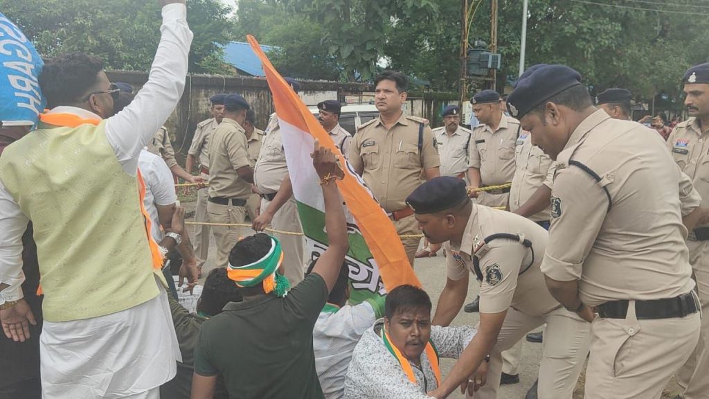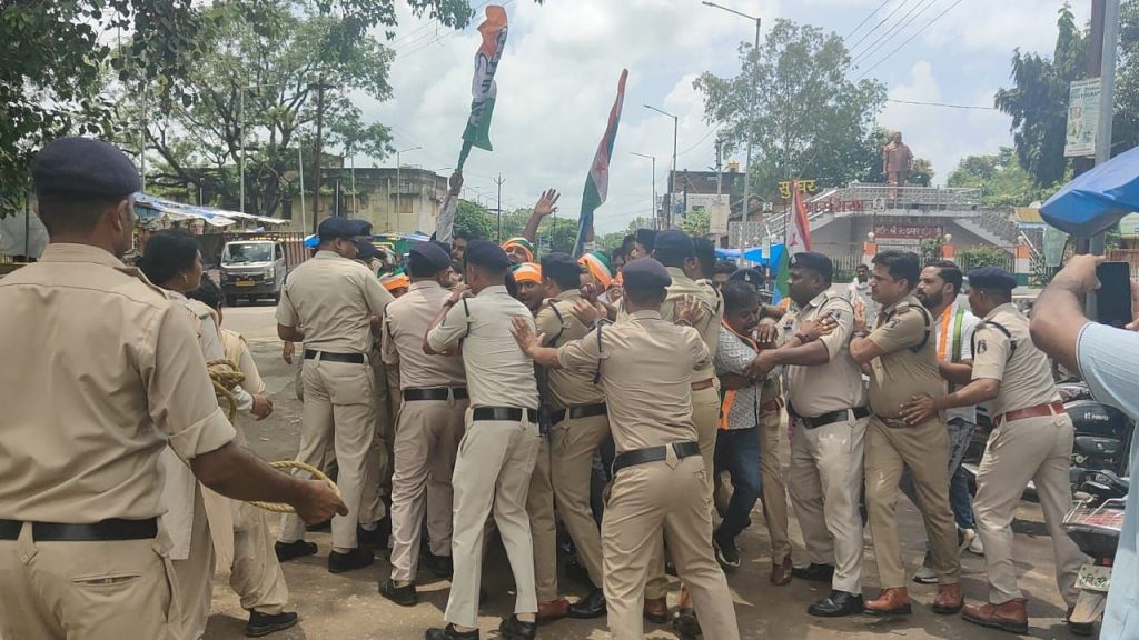 रायगढ/खरसिया। छत्तीसगढ़ के खरसिया में खाद की भारी कमी के कारण किसान परेशान हैं,इस गंभीर मुद्दे को उठाने के लिए खरसिया कांग्रेस, महिला कांग्रेस, यूथ कांग्रेस, एनएसयूआई और ग्रामीण-शहरी कांग्रेस के नेताओं ने शुक्रवार को मुख्यमंत्री विष्णुदेव साय से शांतिपूर्वक मुलाकात कर समाधान की मांग करने की योजना बनाई थी, लेकिन जब कांग्रेस के कुछ नेता ज्ञापन लेकर मुख्यमंत्री से मिलने पहुंचे, तो वहां पुलिस प्रशासन ने उन्हें मुख्यमंत्री से मिलने से रोक दिया।