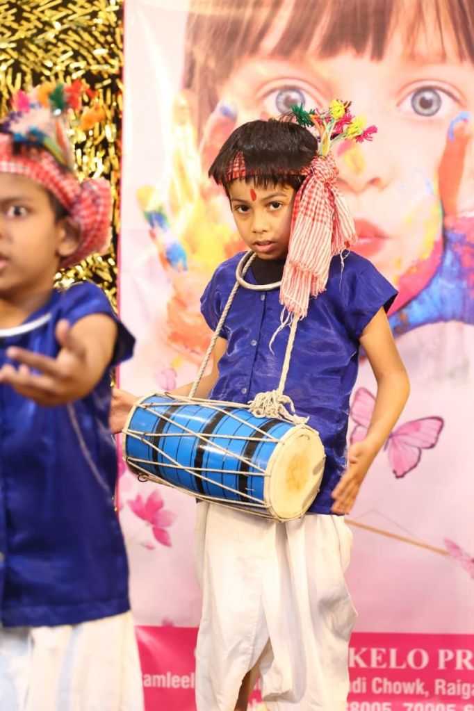 एलके जी बच्चों की यादगार प्रस्तुति – – एक से बढ़कर एक मनभावन कार्यक्रम की अगली श्रृंखला में ग्रुप डांस के अंतर्गत एलके जी क्लास के बच्चे रेयली एबबेई एक्का, वैभव साहू, रेहांशी बरेठ, आराध्य तिवारी, फैजाह अली, गगन सिदार, साक्षी यादव, अयांश कोका, लभान सिंह, हर्षिता साहू, लक्ष्य रेहांगडेले ने रिमिक्स सांग में चित्ताकर्षक परिधानों से जब भाव विभोर होकर झूमे तो उपस्थित लोगों का मन भी खुशी से थिरकने लगा।