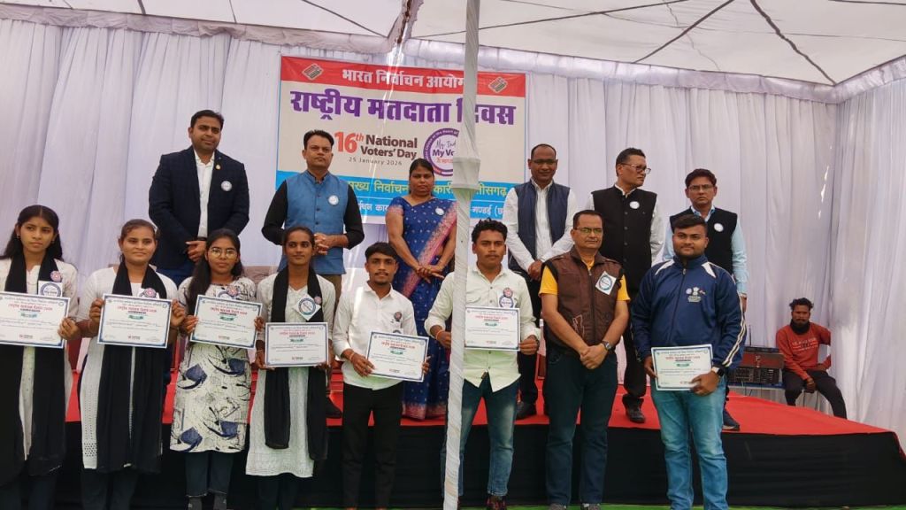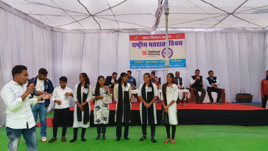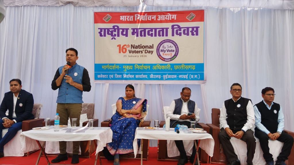 खैरागढ़। भारत निर्वाचन आयोग के निर्देशानुसार कलेक्टर एवं जिला निर्वाचन अधिकारी इन्द्रजीत सिंह चंद्रवाल के मार्गदर्शन में जिला कार्यालय परिसर में 16वां राष्ट्रीय मतदाता दिवस हर्षोल्लास एवं उत्साह के साथ मनाया गया,आयोजन आयोग द्वारा निर्धारित थीम “मेरा भारत, मेरा वोट, मै भारत हूं” पर आधारित रहा।