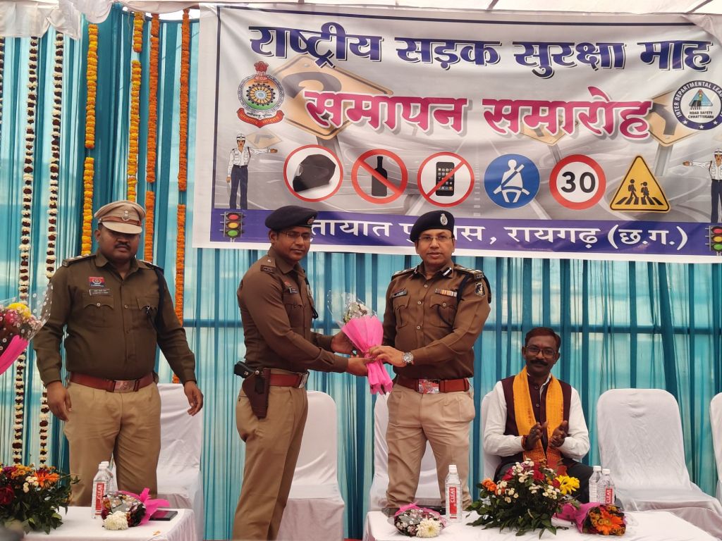 रायगढ़। राष्ट्रीय सड़क सुरक्षा माह 2026 के अंतर्गत रायगढ़ जिले में आयोजित विभिन्न जागरूकता कार्यक्रमों का समापन शुक्रवार को पुलिस सामुदायिक भवन परिसर में भव्य रूप से किया गया,इस अवसर पर जागरूकता गतिविधियों में उत्कृष्ट भागीदारी करने वाले स्कूली विद्यार्थियों को अतिथियों द्वारा पुरस्कार एवं प्रशस्ति पत्र देकर सम्मानित किया गया।