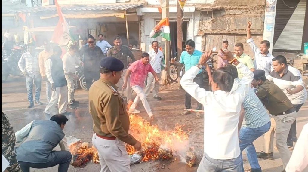 प्रदर्शन में नगर पंचायत अध्यक्ष लाल टारकेश्वर शाह खुसरो, पूर्व जिला पंचायत सदस्य विनोद ताम्रकार, संजीव सिंह चंदेल, पार्षद दिलीप ओगरे, क्रांति ताम्रकार, मोहसिन खान, अमन सोनी, रणजीत सिंह चंदेल, अमित टंडन सहित बड़ी संख्या में कार्यकर्ता शामिल रहे,महिला ब्लॉक अध्यक्ष हेमलता ठाकुर अपनी टीम के साथ मौजूद रहीं,पुतला दहन के दौरान पुलिस और कार्यकर्ताओं के बीच हल्की झूमाझटकी भी हुई, लेकिन इसके बावजूद कांग्रेसियों ने पुतला दहन कर विरोध दर्ज कराया।
