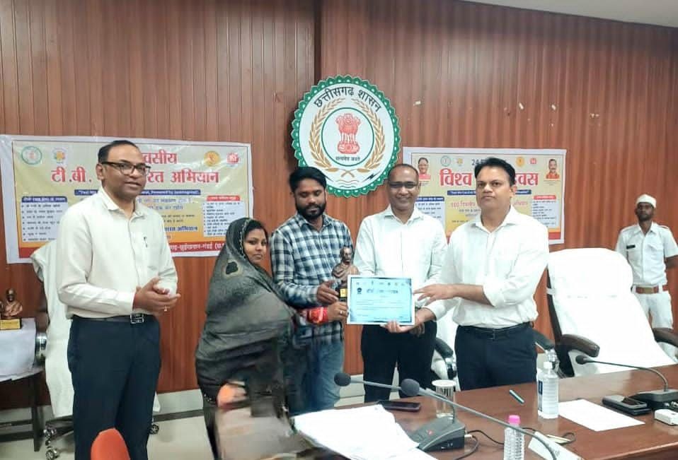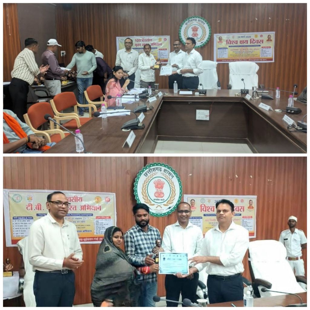 खैरागढ़। विश्व क्षय दिवस के अवसर पर जिले में 100 दिवसीय टीबी मुक्त भारत अभियान का उत्साहपूर्वक शुभारंभ किया गया, यह अभियान जिले को टीबी मुक्त बनाने की दिशा में एक महत्वपूर्ण और सकारात्मक कदम है, जिसमें जनभागीदारी को केंद्र में रखा गया है,कलेक्टर इंद्रजीत सिंह चंद्रवाल एवं मुख्य कार्यपालन अधिकारी, जिला पंचायत प्रेम कुमार पटेल की गरिमामयी उपस्थिति में कलेक्टर कार्यालय के सभा कक्ष में आयोजित कार्यक्रम में वर्ष 2024 में टीबी मुक्त घोषित 53 ग्राम पंचायतों के सरपंचों एवं सचिवों को कांस्य एवं रजत श्रेणी में सम्मानित किया गया,उन्हें महात्मा गांधी जी की प्रतिमा एवं प्रशस्ति पत्र प्रदान कर उनके उत्कृष्ट योगदान की सराहना की गई।