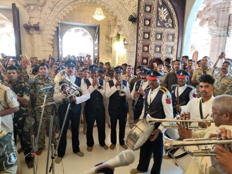 नौ दिनों तक कड़ी ड्यूटी निभाने के बाद रामनवमी के पावन अवसर पर पुलिस का एक अलग ही रूप देखने को मिला, मां बम्लेश्वरी मंदिर में पुलिस विभाग द्वारा भव्य ‘बैंड आरती’ का आयोजन किया गया, वाद्य यंत्रों की मधुर धुनों और आरती की गूंज से पूरा मंदिर परिसर भक्तिमय हो उठा,यह आयोजन न केवल आध्यात्मिक ऊर्जा से सराबोर रहा, बल्कि उन पुलिस जवानों के सम्मान का प्रतीक भी बना, जिन्होंने दिन-रात सेवा कर मेले को सफल बनाया।